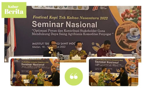 PPTK berpartisipasi dalam kegiatan seminar Nasional, Festival Kopi Teh Kakao Nusantara 2022 di Medan yang diselenggarakan oleh Institut Teknologi Sawit Indonesia. Pada kesempatan tersebut, PPTK menjadi salah satu narasumber yang diwakili oleh Bapak Eko Pranoto, M.P., selaku Manajer Kebun Simalungun sekaligus Peneliti Tanah dan Nutrisi Pusat Penelitian Teh dan Kina.
