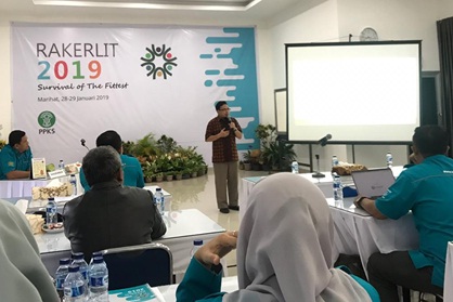 Pusat Penelitian Kelapa Sawit (PPKS) Medan mengadakan Rapat Kerja Penelitian (Rakerlit) pada tanggal 28 – 29 Januari 2019 di PPKS Unit Marihat-Pematangsiantar, Sumatera Utara. Kegiatan Rakerlit ini sangat penting dilaksanakan untuk mendukung tema PPKS tahun 2019 yaitu Survival of the Fietest. Kegiatan Rakerlit dibuka oleh Direktur PPKS, Dr. Hasril Hasan Siregar. Dalam kesempatan tersebut juga dilakukan evaluasi rumusan rakerlit 2018 dan pemaparan materi ide riset yang berkaitan dengan teknologi nuklir untuk penelitian kelapa sawit. Salah satu agenda yang dilaksanakan selama Rakerlit berlangsung adalah penyampaian materi mengenai “Teknik Penulisan Proposal ke Pihak Ketiga”. Proposal kerjasama merupakan salah satu komponen penting untuk terlaksananya riset yang berkelanjutan dan inovatif. Materi tersebut disampaikan oleh Kepala Bidang Penelitian Pusat Penelitian Teh dan Kina (PPTK), Dr. Dadan Rohdiana pada Rakerlit hari kedua (29/01/2019) dengan tujuan untuk menjadi motivasi, inspirasi dan masukan bagi peneliti di lingkup PPKS-Medan.