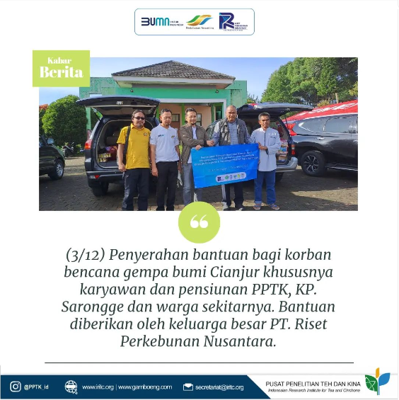 Penyerahan Bantuan bagi Korban Bencana Gempa Bumi Cianjur Khususnya Karyawan dan Pensiuanan PPTK, KP. Sarongge dan Warga Sekitarnya
